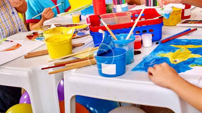 We teach your children to work with watercolor paint, develop artistic skills and engage them in the team-working process of creating collages and mosaics.